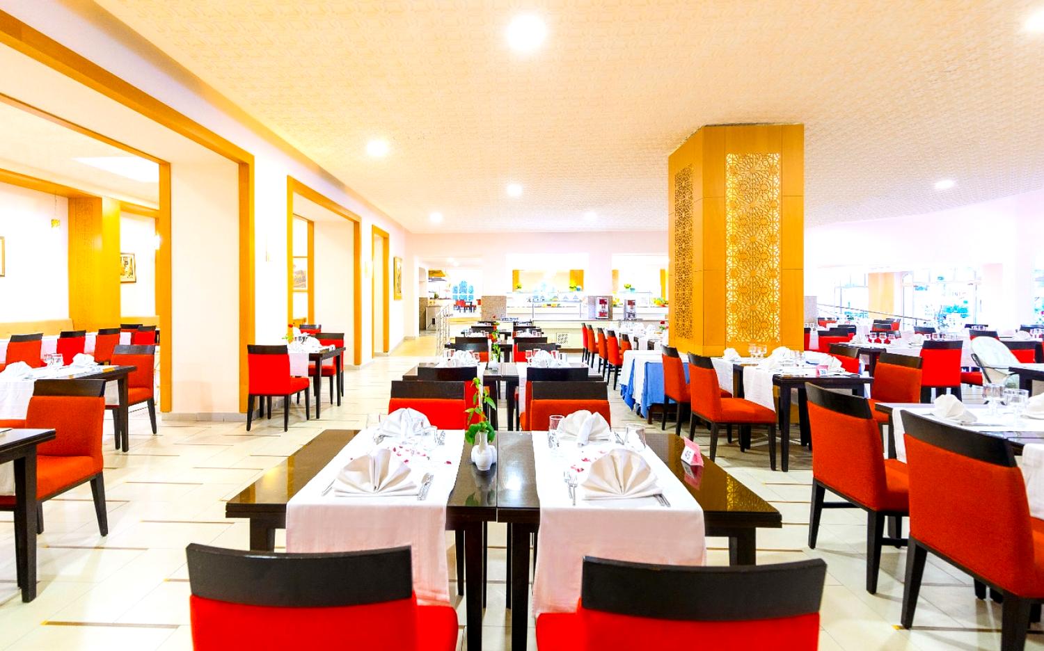 Die Gemeinschaftsräume sind elegant dekoriert und schaffen eine warme und einladende Atmosphäre. Darüber hinaus bietet das Marhaba Palace Hotel verschiedene Einrichtungen wie Fitnesscenter, Spa-Zentren und Aktivitäten für die ganze Familie.