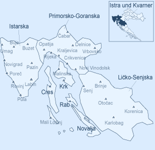 Istarska Primorsko Goranska Cres Krk Rab Ličko-Senjska Novalja